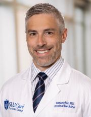 Benjamin Reid is originally from the Kansas City area. He earned an undergraduate degree in environmental policy from American University in Washington, D.C. and briefly worked for an ocean conservation nonprofit. He found the work rewarding but not ultimately stimulating, so he followed his passion, working full time in a bookstore while he planned a route to become a physician. He obtained a post-baccalaureate degree from the University of California, Berkeley and worked as a hemodialysis technician before gaining acceptance to Saint Louis University School of Medicine, where he graduated medical school, completed a residency program and joined the faculty. He initially worked in hospital medicine before changing his focus to ambulatory medicine.