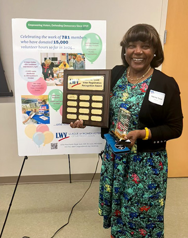 Sabrina W. Tyuse, Ph.D. (Social Work) was recognized on May 3, 2025, as the first recipient of a new award bearing her name: the Sabrina Tyuse Voter Registration Recognition Award. The award was presented at the League of Women Voters of Metro St. Louis’s annual meeting in honor of Tyuse’s extraordinary commitment to civic engagement.